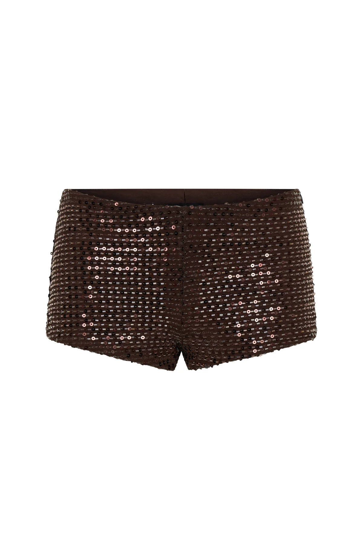 Birthday girl in full sparkle mode! The Glitterati Beaded Mini Shorts in Chocolate feature a thin elastic waistband, mini length, and all-over beaded and sequin detailing. Fully lined in a high‑stretch fabric, they also include an invisible side zip with a hook‑and‑eye closure for a sleek, secure fit. Style with the matching The Glitterati Beaded Top Chocolate or The Lime Light Beaded Bustier, and kitten heels.