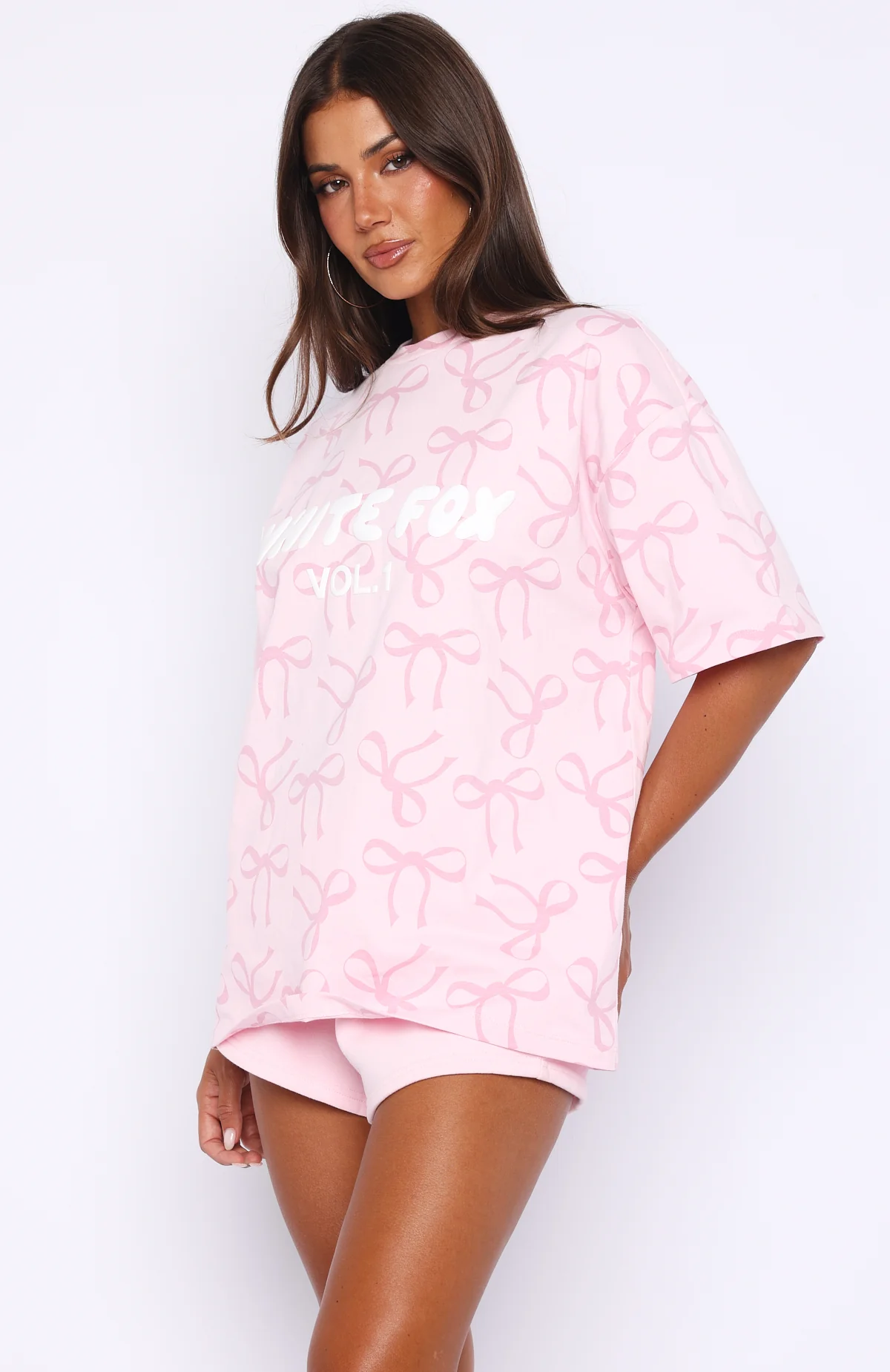 Trending for a reason! The Vol. 1 Oversized Tee Posy Bow features a classic crew neckline, slouched shoulders, short sleeves and an oversized silhouette with a playful bow print and puff-printed White Fox text at the centre front. Pair it with denim jeans for an effortless, casual look.